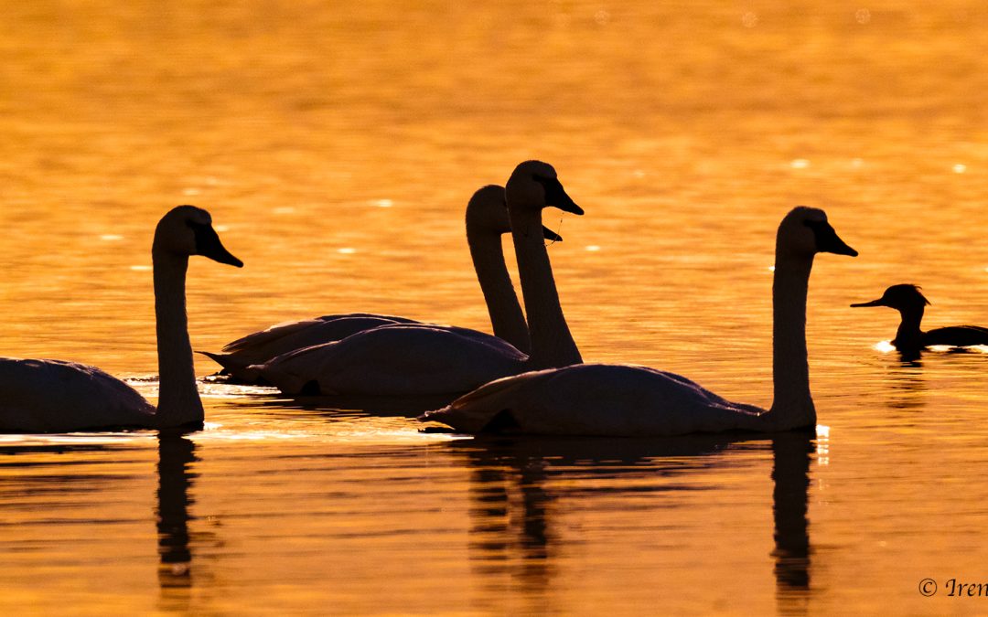 Swans4MeganserApproach 2100 by Osprey Photo Workshops & Tours | Jan 29, 2024 Swans at sunset with merganser