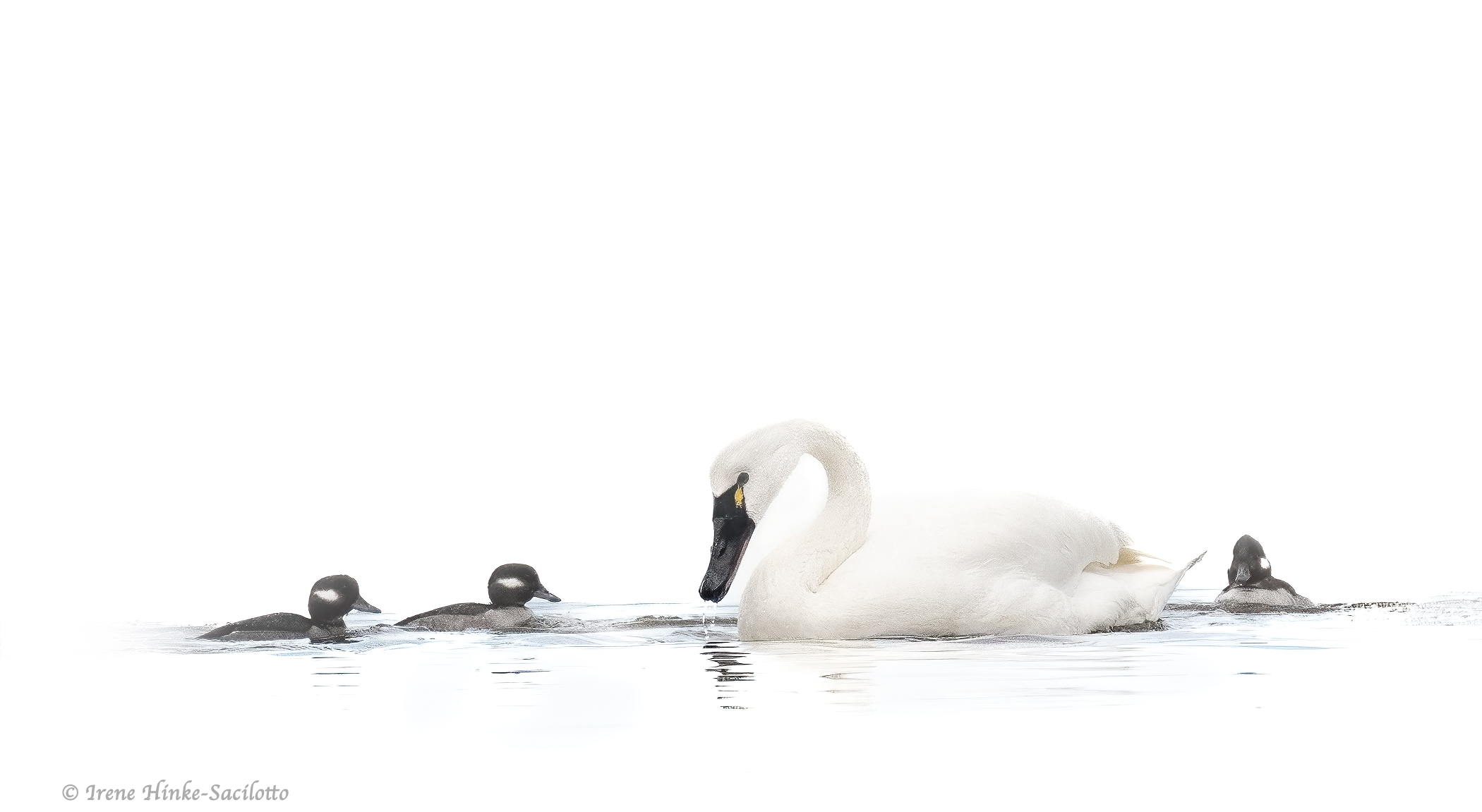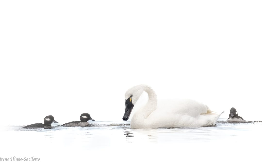 SwanBuffleheadsSwim2-6526CR2100v2SHP copy by Osprey Photo Workshops & Tours | Jan 29, 2024 Bufflehead ducks & swan.