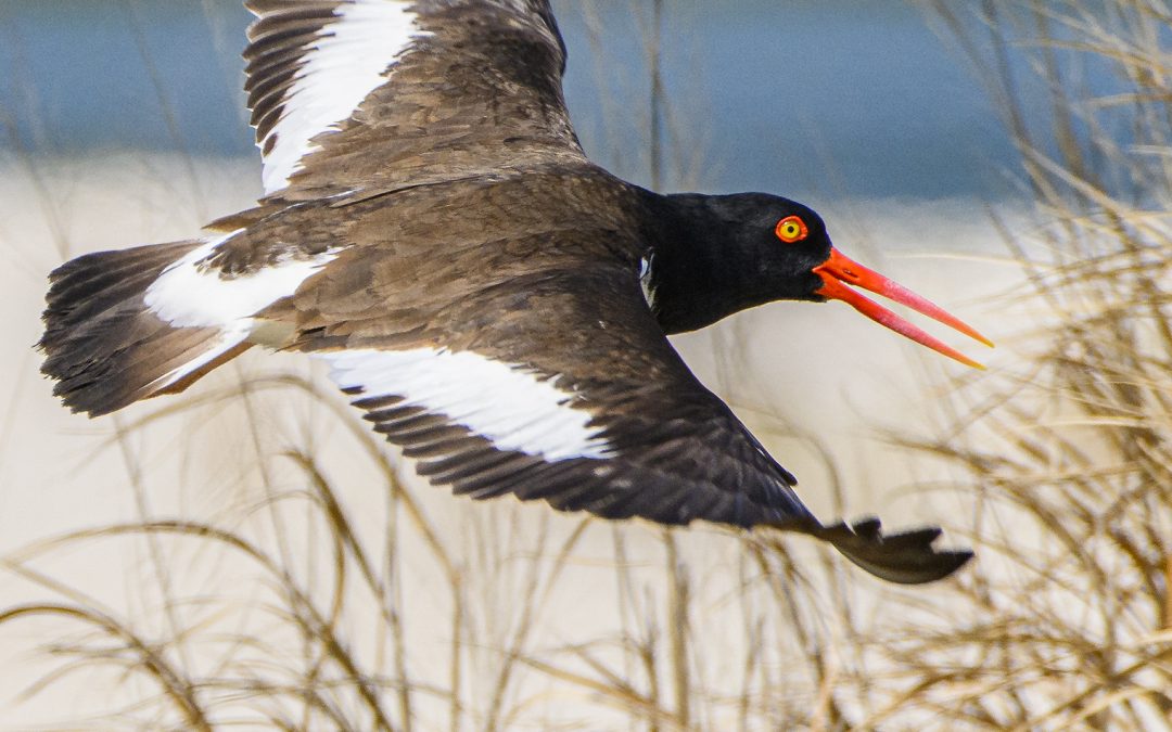 OystercatchersFlyOverGrassGreatCR1920-4798 copy by Osprey Photo Workshops & Tours | Jul 15, 2022 American Oystercatcher flying over grasses on beach.