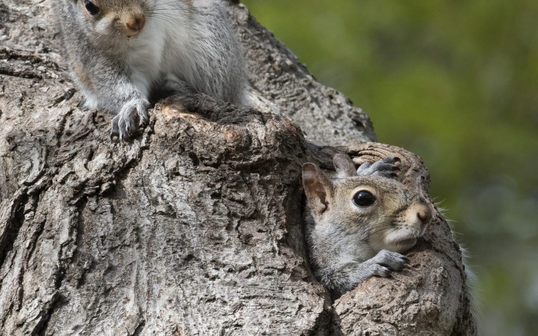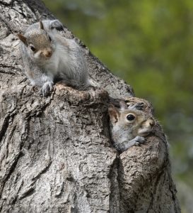 SquirrelLeanOutPawscratch-6695CR10 by Osprey Photo Workshops & Tours | Oct 7, 2020 Young Gray Squirrels in cavity.