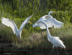 Great Egrets fighting.