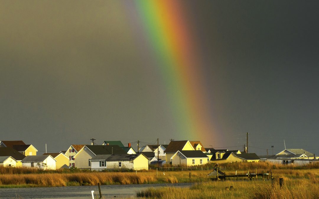 HeronRainbow-63652V4 by Osprey Photo Workshops & Tours | Oct 26, 2019 Tangier Island marsh with heron in foreground and rainbow.