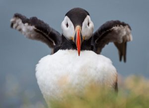 PuffinFaceOnWingsUp-1603WEB2 by Osprey Photo Workshops & Tours | Oct 7, 2020 Atlantic Puffins stretching wings,