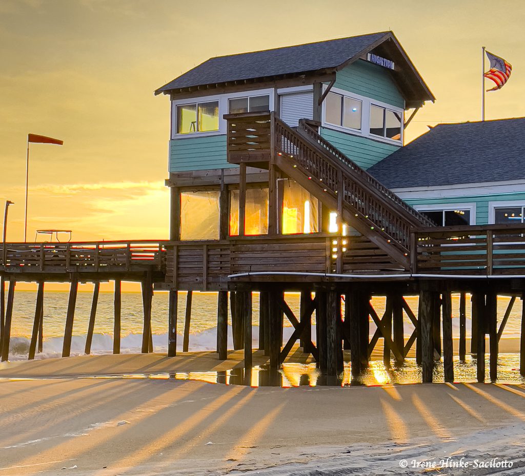 This Outer Banks Photo Workshop offers a variety of photographic opportunities —lighthouses, miles of pristine beaches, sand dunes, small boat harbors, historic sites, fishing piers, wildlife reserves, and parks. Over the ocean, along the shoreline, and in the marshes, waterways, and forests, we will look for photographic subjects including pelicans, herons, shorebirds, warblers, pelagic seabirds, dolphins, deer, fox,and other wildlife. Locations to be visited include Bodie and Currituck Beach Lighthouses, Roanoke Marshes Lighthouse, Duck boardwalk overlooking Currituck Sound, Wanchese Harbor, Pea Island National Wildlife Refuge, Currituck Banks Coastal Estuarine Reserve, and Hatteras National Seashore. On the Outer Banks, sunrises are often spectacular. The image below is of Avalon Pier as the sun is rising. Jennette’s Pier (1000 foot-long pier in Nags Head) also offers wonderful opportunities for photography where we hope to capture images of flying pelicans, pelagic birds, propose, surfers, and fisherman.