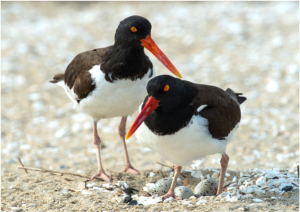 American Oystercatchers on nest with eggs.
